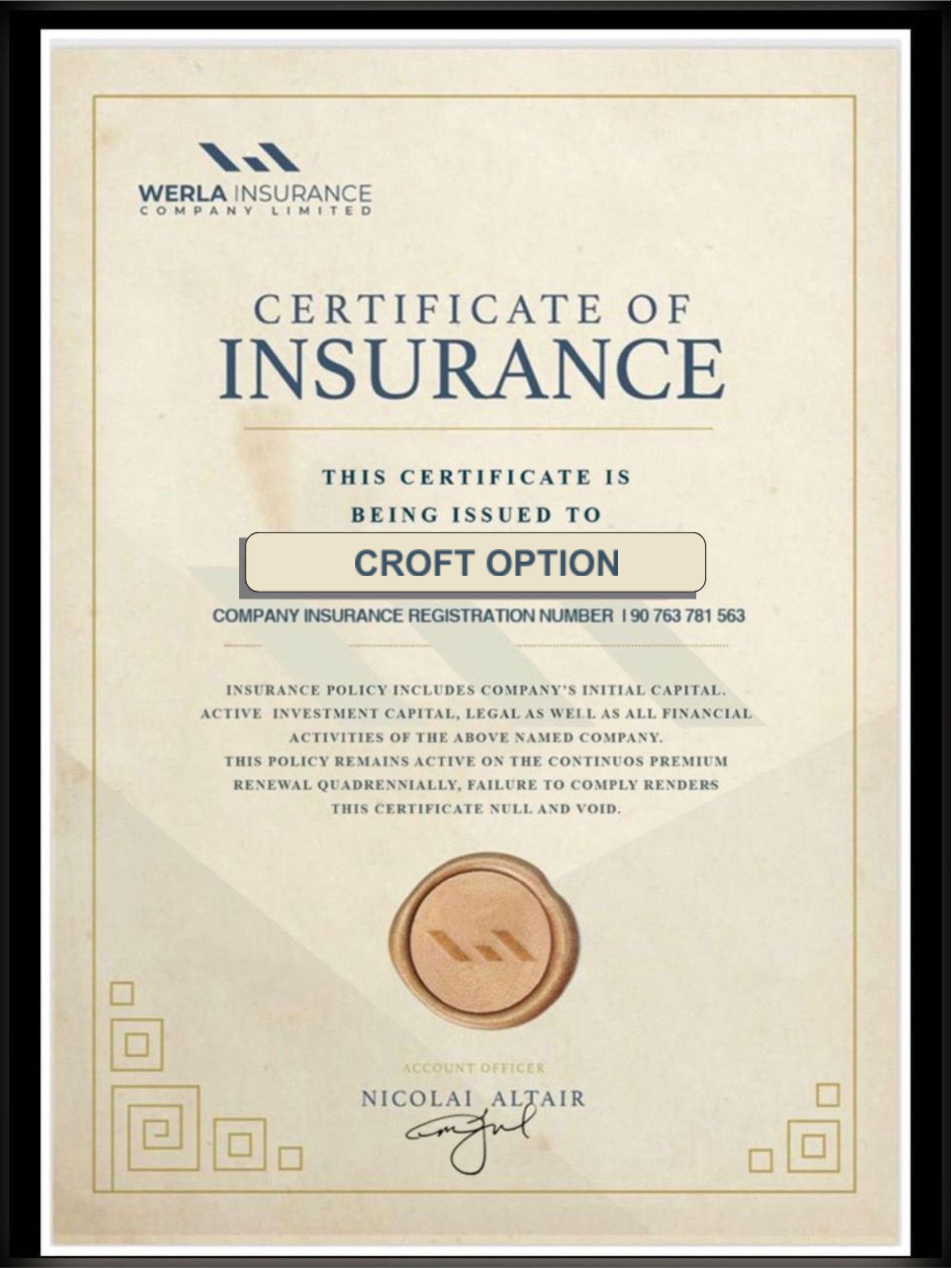 Croft Option is registered and has official permission for investment and trading activities. The services of our company are available to every investor from anywhere in the world.